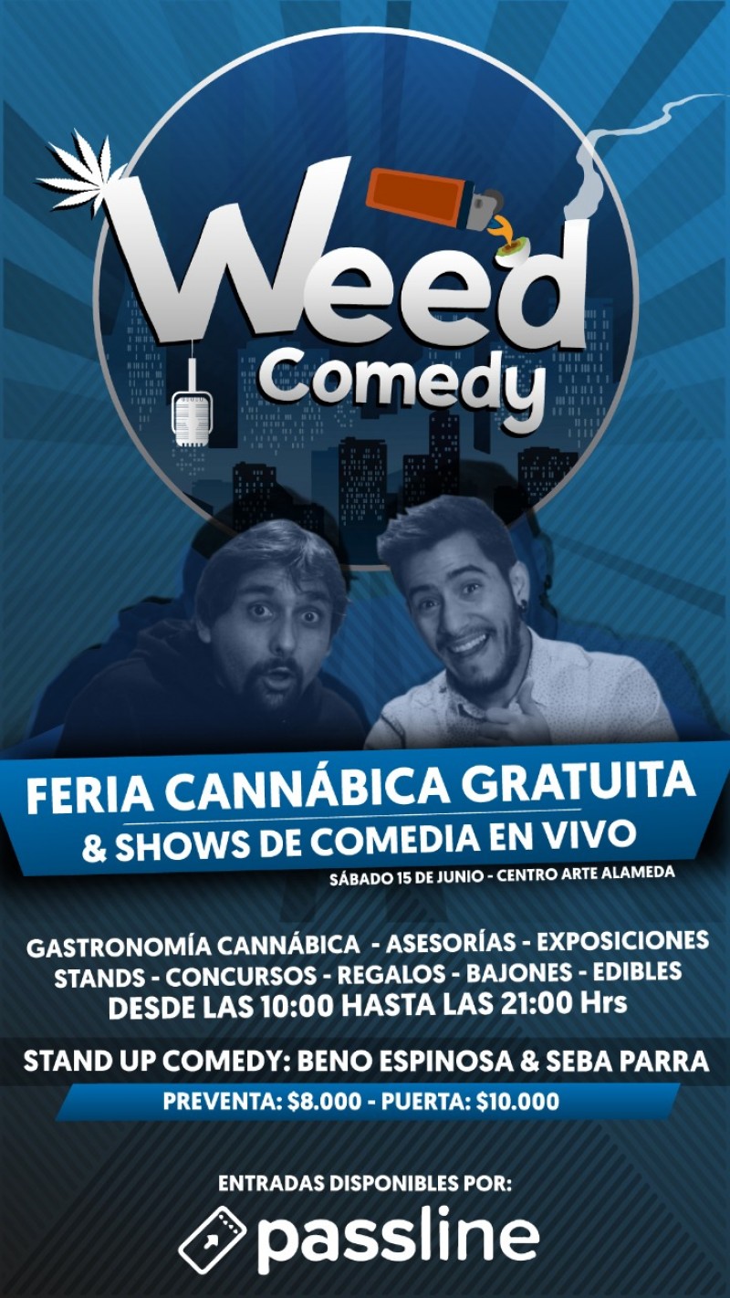 Este sábado 15 de junio en Centro Arte Alameda se realizará la 1ra versión de “Weed Comedy” un nuevo concepto de stand up comedy que tendrá la misión de sacar carcajadas con los consagrados Sebastián Parra y Beno Espinosa quienes presentarán las mejores rutinas de humor y situaciones abstractas, aquellas que alguna vez has pasado sin darte cuenta.