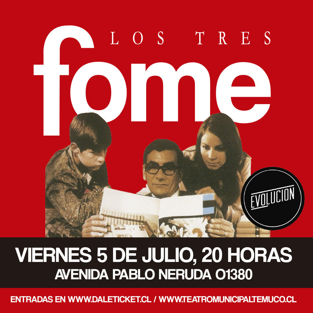 Con contundentes shows en Vive Latino en México y Lollapalooza Chile, el grupo Los Tres ha dado inicio a la celebración de los 22 años en un concierto que revisa de principio a fin su cúspide creativa, el elogiado álbum “Fome”. El inicio de este hito comenzó con sus dos shows sold out en Santiago, durante los días 10 y 11 de mayo. El exitoso comienzo dio pie a programar una gira nacional, donde Temuco está programado para julio.
