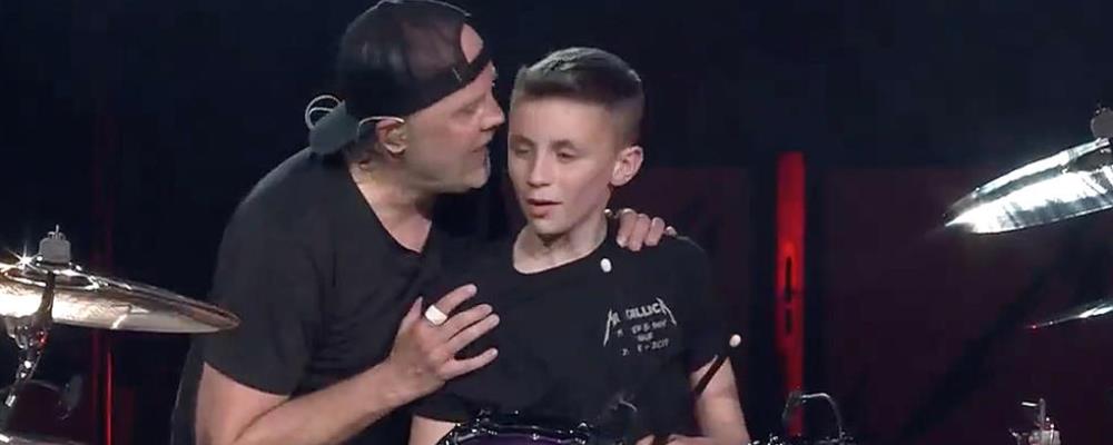 Adamson fue invitado al escenario, mientras que el cantante James Hetfield fingió sorpresa al darse la vuelta y no ver a Lars Ulrich detrás del kit. «Oh, Dios, Lars se encogió. Pusieron a Lars en el lavadero. Les dijeron que no lo pusieran en la secadora», bromeó el cantante, mientras Ulrich aparecía ofreciendo algunas palabras de aliento para el joven Evan.
