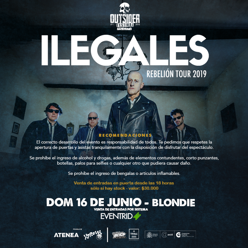 La visita del conjunto asturiano de Rock & Roll salvaje “Ilegales”, quienes provistos de una carrera desenfrenada pero profundamente exitosa, vuelven a Chile luego de 17 años sin pisar nuestros escenarios; al alero de un nuevo disco que ha demostrado que su demoledor estilo continúa rompiendo esquemas, tal cómo lo hacía hace más de 35 años cuando debutaron en 1982.