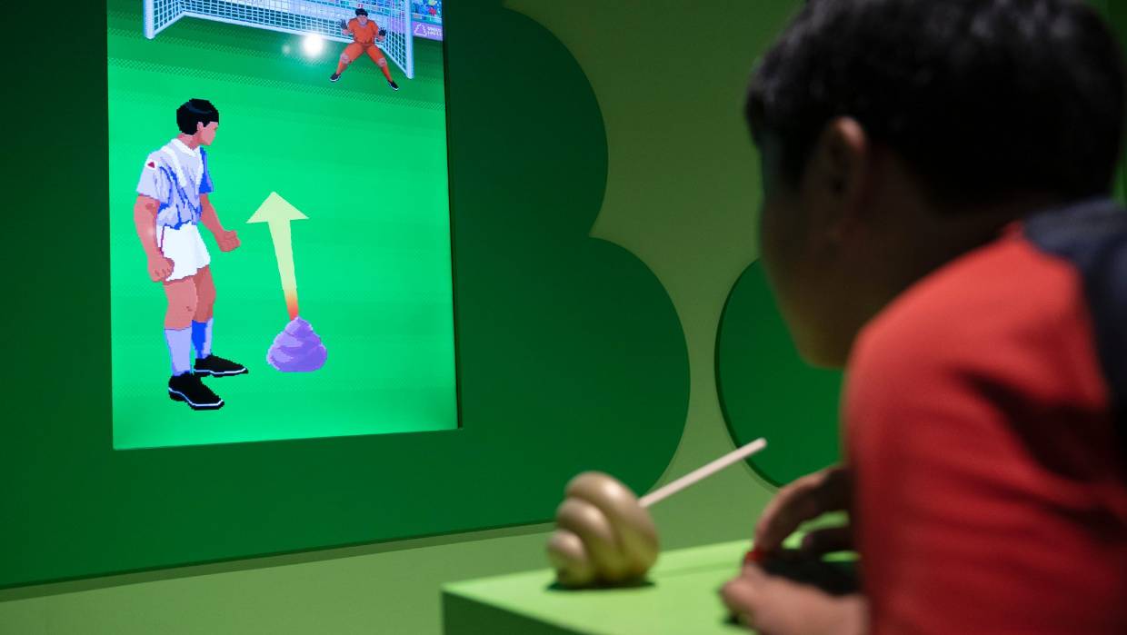 Luego hay muchos videojuegos inspirados en la figura del «unko», uno de fútbol donde tienes que patear un ‘mojón’ como si fuera un penal al arco. Otro donde los participantes compiten para hacer la mayor «caca» gritando la palabra en japonés, «unko», lo más fuerte posible, etc. Al final del recorrido, los visitantes reciben una bolsa para llevar a casa sus «cacas» de recuerdo.