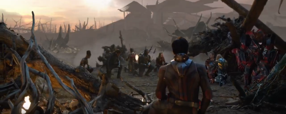 Cuando Tony Stark está muriendo, Black Panther, Capitana Marvel, los Guardianes de la Galaxia, Doctor Strange, Ant-Man y el resto de los presentes por rinden homenaje a la muerte de Iron Man, inspirados por Hawkeye que se arrodilló ante su compañero y amigo.