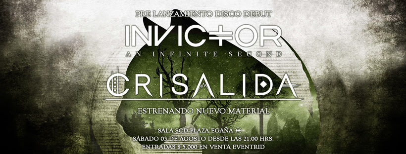 El próximo 3 de agosto a las 20:30 horas en Sala SCD Plaza Egaña, se presentarán por primera vez en conjunto las bandas de metal progresivo Crisálida e Invictor.