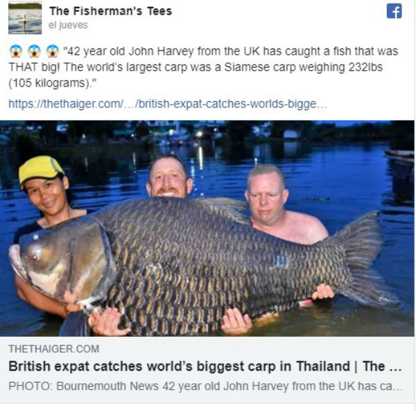 La hazaña ocurrió en el lago Pal Tree de la ciudad de Pattaya, en Tailandia, donde el inglés reside hace 14 años. Luego de una ardua lucha de 80 minutos, el pescador consiguió subir el animal a su barco, aunque con la ayuda de otras dos personas, debido al peso de la carpa.