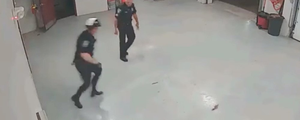 La cámara de seguridad de un departamente de policía captó el momento en que dos agentes en Nuevo Hampshire, EE.UU. persiguieron a una ardilla que los sorprendió en el interior de la comisaría.