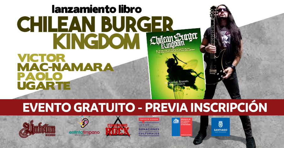 El libro «Chilean Burger Kingdom» escrito por Víctor Mac-Namara parte de Thornafire y Paolo Ugarte, será estrenado el próximo viernes 16 de agosto de 7:00pm hasta 8:30pm, en el Palacio Álamos ubicado en Santo Domingo 2398, a pasos del Metro Cumming.