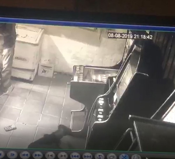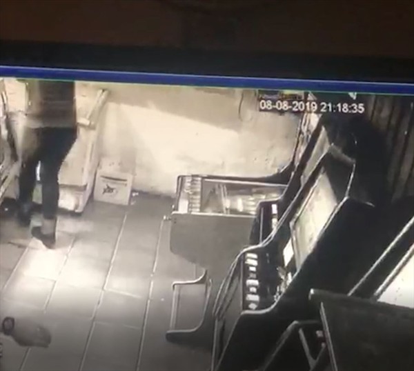 En las imágenes se puede apreciar que primero unas personas huyen al fondo del local, donde segundos después entra el asesino con el arma.