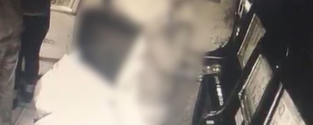 Primero dispara a una mujer que no logró escapar, y luego comienza a dispararle a todo el resto de personas. Solo una persona queda en pie en el registro.