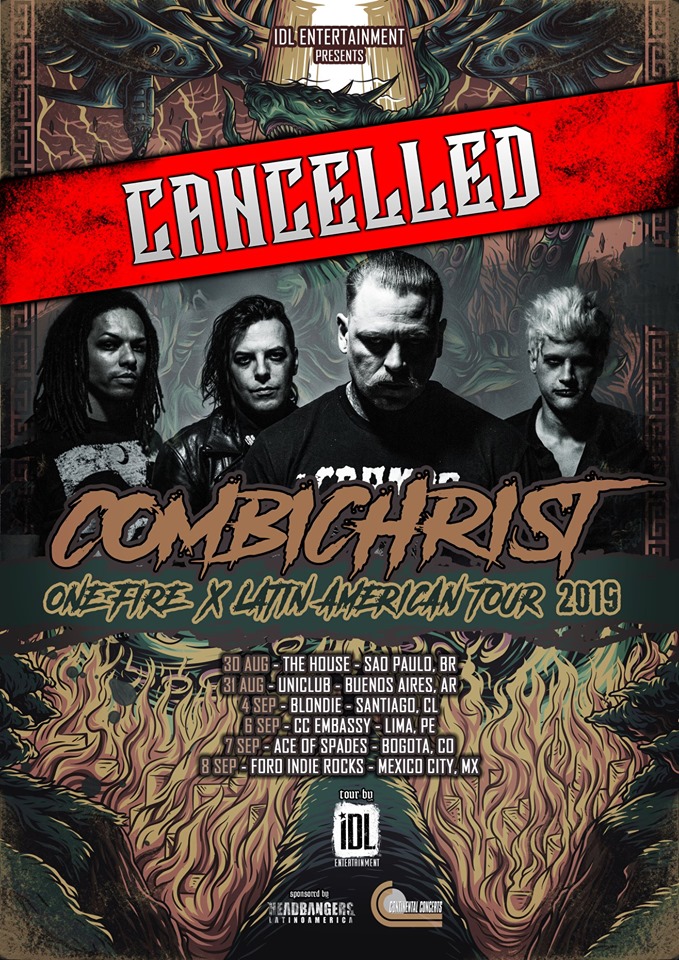 Noticias Combichrist canceló toda su gira latinoamericana y no se presentará en Chile Los alemanes anunciaron que no podrán venir esta vez. Por Jorge Lagas | 20 Ago, 2019. 12:21 hrs Una baja para la cartelera de conciertos: el grupo alemán de metal industrial Combichrist canceló el concierto que iban a dar en Chile el 4 de septiembre, en el Club Blondie. Fue toda la gira latinoamericana la que se cayó, lamentablemente por problemas en otros países no fue posible hacer todo el recorrido y Chile se vio perjudicado por esta situación. La banda comunicó que pronto esperan reagendar el tour, por ahora no veremos a Combichrist en nuestro país. Devoluciones de entradas, por la misma vía en que se adquirieron. combichrist Cellar Darling se presentará en Santiago - Martes 27 de agosto, Club Rock & Guitarras La reacción de una abuela que se comió por error los queques 'mágicos' de su nieta Sigue a FUTURO.cl en Google Discover Recibe nuestros contenidos directamente en tu feed. Seguir en Google Contenido patrocinado
