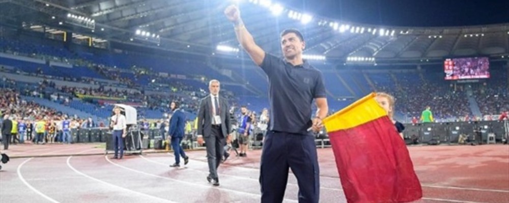 Acompañado de sus hijos, además de una bandera con los colores de la AS Roma, club al que defendió durante seis años, se dirigió a la galería donde estaban los fanáticos para recibir aplausos y gritos a su favor.
