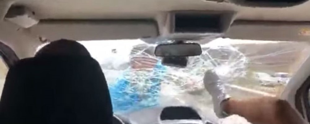 El enfurecido sujeto albanés se montó sobre el automóvil de la familia española y atravesó el parabrisas a golpes.