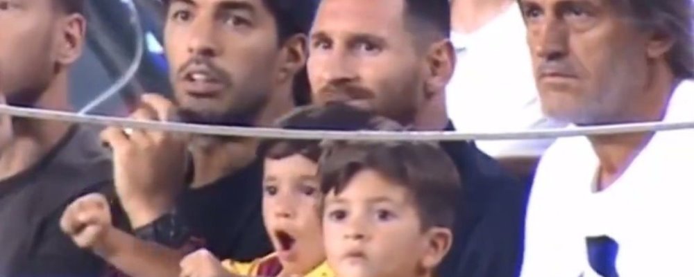 Pero las miradas estaban en las tribunas, cuando los delanteros no citados por lesión miraban atentos una jugada del Betis, que finalmente se transformó en gol. Mateo Messi celebró el tanto del equipo contrario de su padre, situación que Suárez aprovechó para trolear al pequeño con actitud de «¿qué hacés? mientras su padre se reía junto a sus hijos mayores. Las risas repercutieron para toda la tribuna por el blooper del pequeño «Pulga».