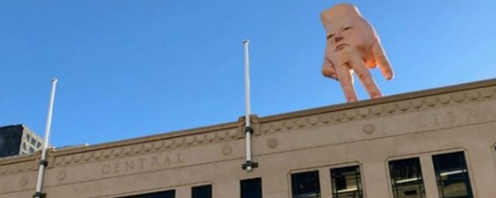 Eso es lo que seguramente quería conseguir el artista neozelandés Ronnie Van Hout con una de sus esculturas, la que fue instalada en lo alto de la Christchurch Art Gallery, en la ciudad de Christchurch, Nueva Zelanda. La reacción de la comunidad fue de temor ante la instalación.