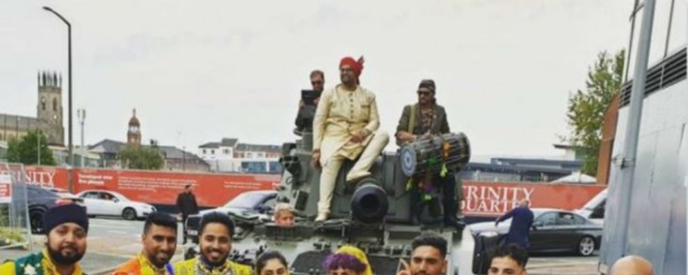 My man just turned up to his wedding in a tank…desis in Birmingham kill it 😂 pic.twitter.com/kV3UFMDnEE