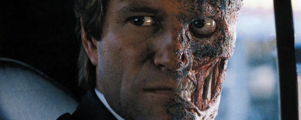 En The Dark Knight , The Joker secuestró y ató a Harvey Dent. Cuando Batman intentó salvarlo, una explosión quemó la mitad de la cara de Dent, desfigurando y traumatizándolo. Culpó a Batman y buscó venganza.