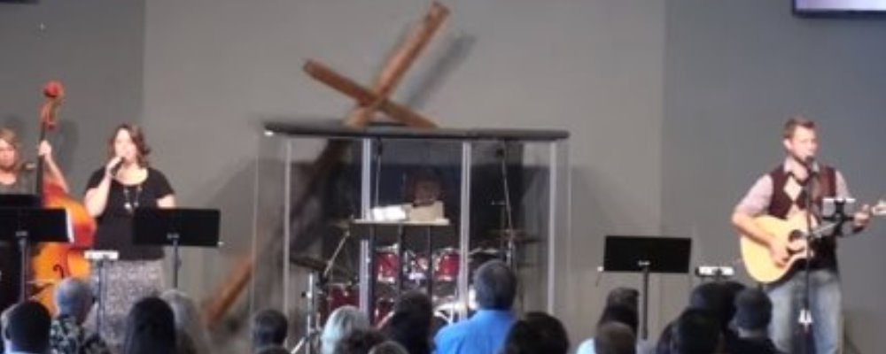 Mientras ejecutaban su música dentro de un templo, la cruz que estaba al lado del baterista, cayó sin que nadie la moviera, encima del músico y su instrumento.