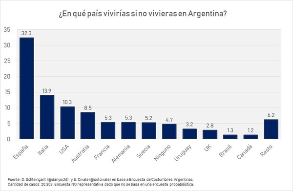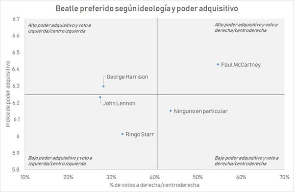 La encuesta, que tuvo más de 20.000 respuestas en una muestra no representativa, imposibilitando la extrapolación de los resultados al conjunto de la población, incluyó preguntas que cruzaban estos datos con el beatle favorito e, incluso, con las preferencias a la hora de migrar, donde Chile no es considerado.