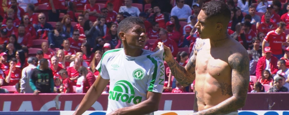 Al finalizar el primer tiempo del partido entre el Internacional de Porto Alegre y el Chapecoense de la liga brasileña, el jugador local Paolo Guerrero se quitó la camiseta para intercambiársela con su rival y excompañero del Flamengo Márcio Araújo.