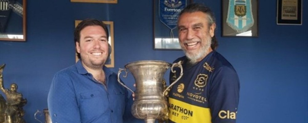Hoy fue al Centro de Entrenamientos de Everton, donde el presidente del club Pedro Cedillo le obsequió una camiseta del club, además de posar para una fotografía con la copa del último torneo que ganaron.