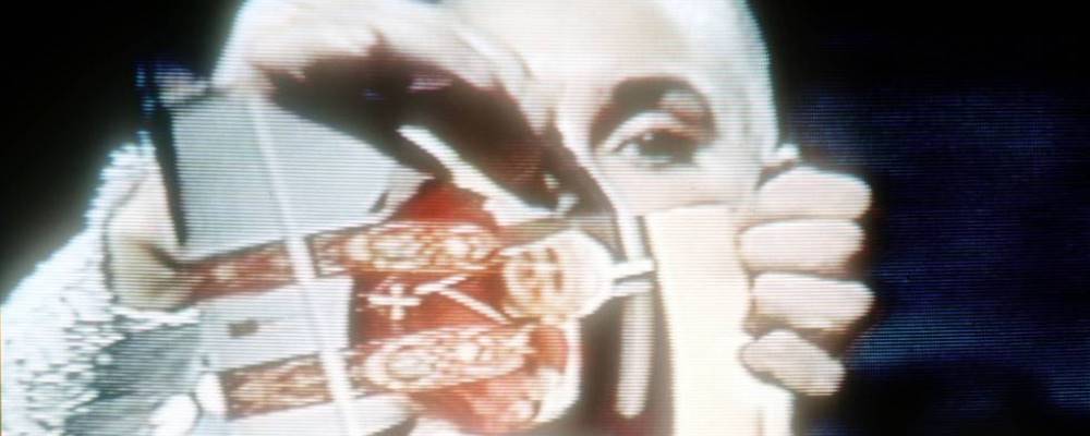 O’Connor, que ya era una figura del pop con 26 años, canta una versión a capela (o sea, sin música) de War, de Bob Marley. Como en el caso de Nothing Compares 2 U, O’Connor transfigura la canción: de alegre himno de unión a ritmo de reggae a discurso árido y lúgubre sobre el estado del mundo, todo ello en un plano estático durante tres minutos y diecisiete segundos. Al final, tras la parte en la que canta “niños, niños, ¡pelead!” y “tenemos confianza en la victoria del bien sobre el mal”, alza una foto del papa Juan Pablo II. A continuación la rompe en dos pedazos, después en cuatro, al final en ocho –el sonido del papel desgarrándose recogido con precisión por el micrófono– y los arroja hacia la cámara al grito de: “¡Luchad contra el verdadero enemigo!”.
