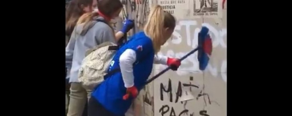 Este fin de semana, una joven se volvió viral por su forma de limpiar las paredes con rayados tras las masivas manifestaciones en Santiago.