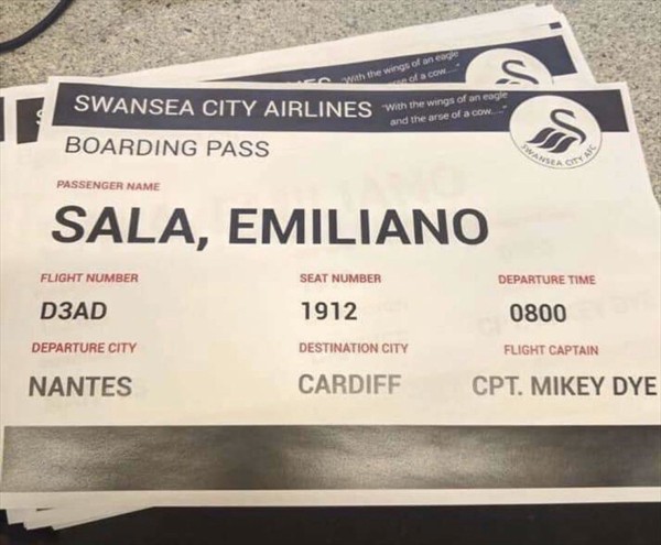 Partido que se vio empañado por la macabra burla de los hinchas del «cisne» en la previa del duelo ante los «bluebirds». Esto porque a los fanáticos del Swansea no se les ocurrió nada mejor que publicar carteles con una tarjeta de embarque de avión, con el nombre del argentino Emiliano Sala.