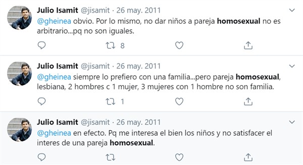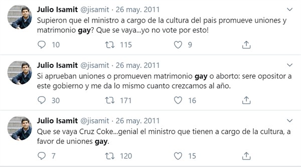 «Yo no vote para financiar a ministros que promueven matrimonios gay» es solo una de las decenas de mensajes del nuevo personero de Gobierno contra la comunidad LGBT+.