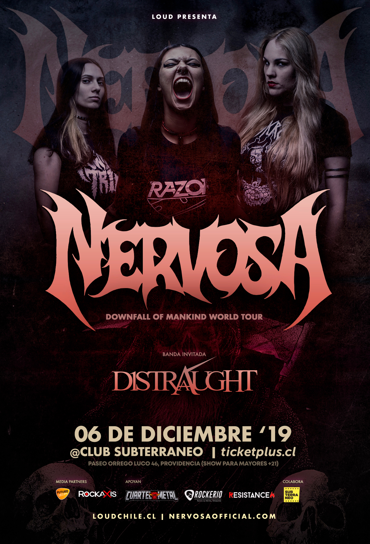Noticias Nervosa vuelve a Chile en concierto – Viernes 6 de diciembre, Club Subterráneo La banda brasileña estará presentando su último disco 'Downfall of mankind'. Por Jorge Lagas | 07 Oct, 2019. 14:35 hrs Se siguen confirmando conciertos para antes que termine el año, la banda brasileña Nervosa se anota para tocar el 6 de diciembre en el Club Subterráneo. La agrupación de thrash metal compuesta íntegramente por mujeres viene con la gira de su último disco ‘Downfall of mankind’ (2018), que las ha tenido en algunos de los más importantes festivales de Hispanoamérica y recientemente fueron confirmadas para la edición 2020 del Wacken Open Air, una de las citas más grandes e importantes del mundo. Banda invitada: los nacionales D1straught. Las entradas están en Ticketplus.cl, precios entre $15.000 y $20.000. nervosa Festival Woodstaco 2020 ya tiene sus entradas a la venta Esta semana se realizará Dragon Concert, el concierto inspirado en Dragon Ball Sigue a FUTURO.cl en Google Discover Recibe nuestros contenidos directamente en tu feed. Seguir en Google Contenido patrocinado