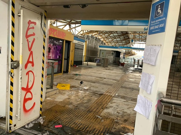 Pasadas la medianoche, los militares salieron a las calles a tomar el control de la ciudad, pero para varias estaciones del Metro de Santiago ya era muy tarde: 20 estaciones fueron quemadas y y más de 40 fueron azotadas por la violencia de los manifestantes.