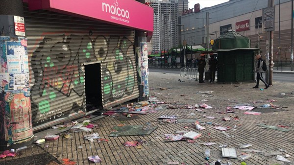 Una decena de supermercados, locales comerciales y sucursales bancarias fueron saqueadas en una noche de caos y vandalismo en la capital, además hubo atentados incendiarios a 16 buses del sistema RED.