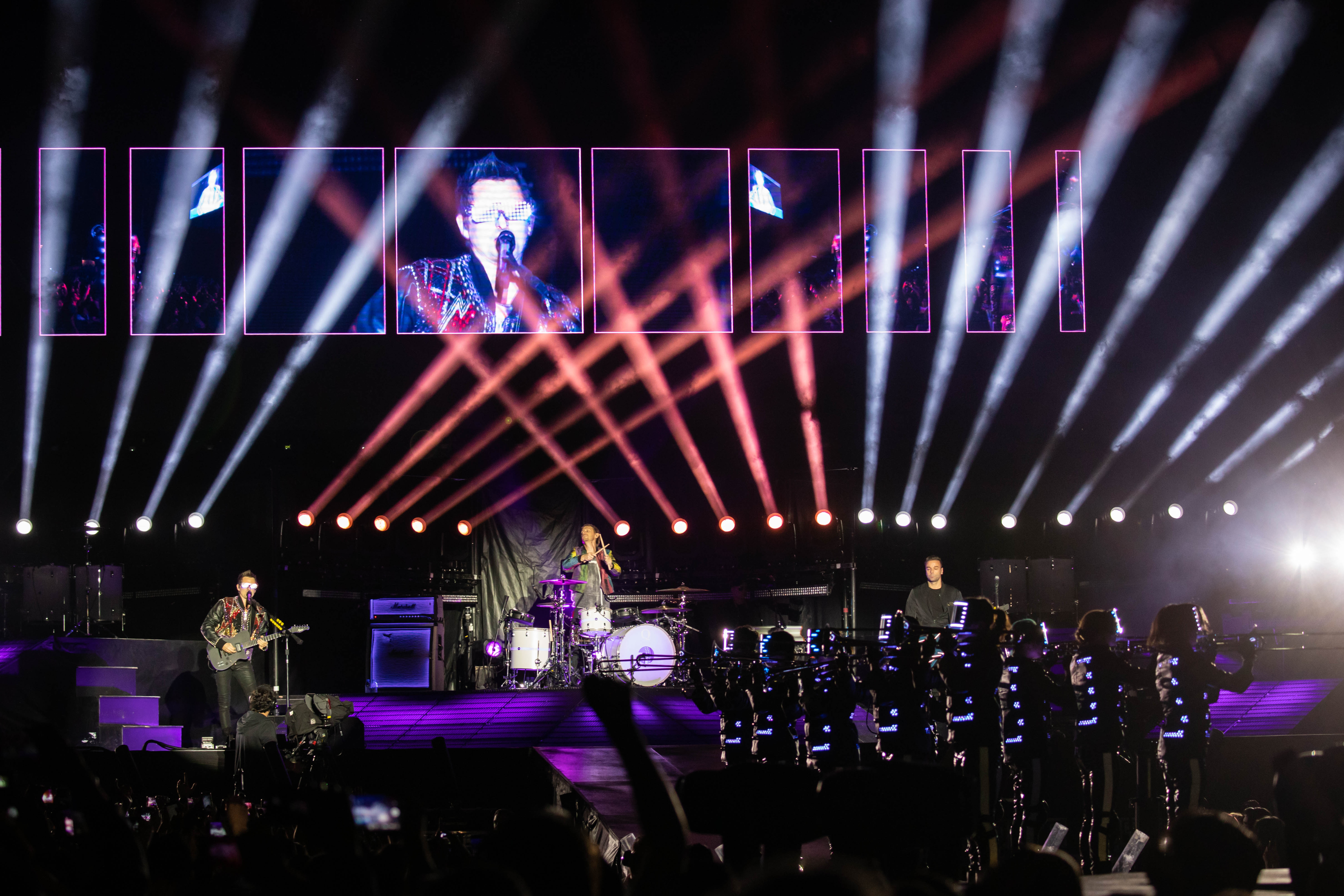 Los británicos con la temática virtual y cinéfila de su octavo álbum como eje principal, entregaron en Pista Atlética un espectáculo que los mantiene como una de las bandas imperdibles de ver en vivo.