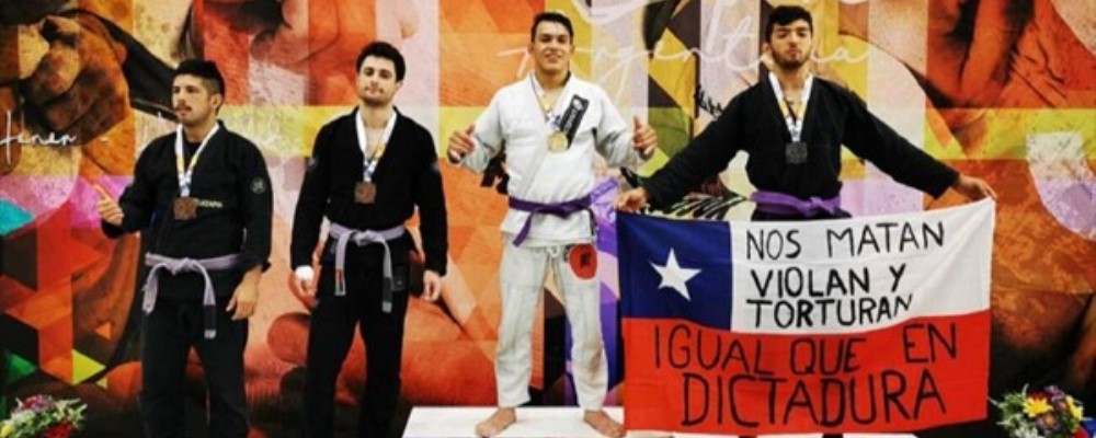 Rogers Rogerio, chileno que compite en el jiu jitsu consiguió un segundo lugar en el Open Argentina, protestó con la bandera nacional en medio de la ceremonia de premiación.