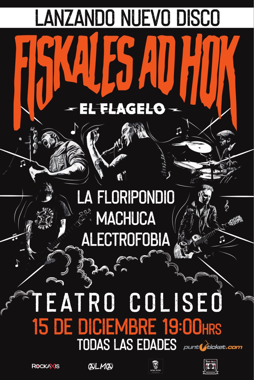 La banda insigne de la movida punk chilena Fiskales Ad-Hok , hace algunas semanas anunció el lanzamiento de su primer disco en 10 años. La producción que llevará por nombre El Flagelo (2019), su noveno álbum de estudio. Este será lanzado con un gran concierto programado para el 15 de diciembre en Teatro Coliseo.