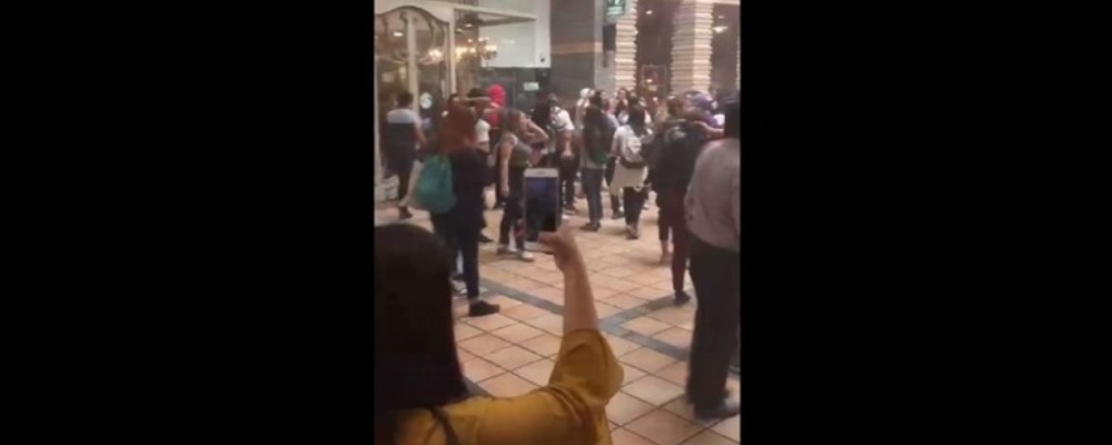 Cerca de las 14:00 de este miércoles, un grupo de manifestantes llegó hasta el interior del Parque Arauco, en Las Condes, para protestar.
