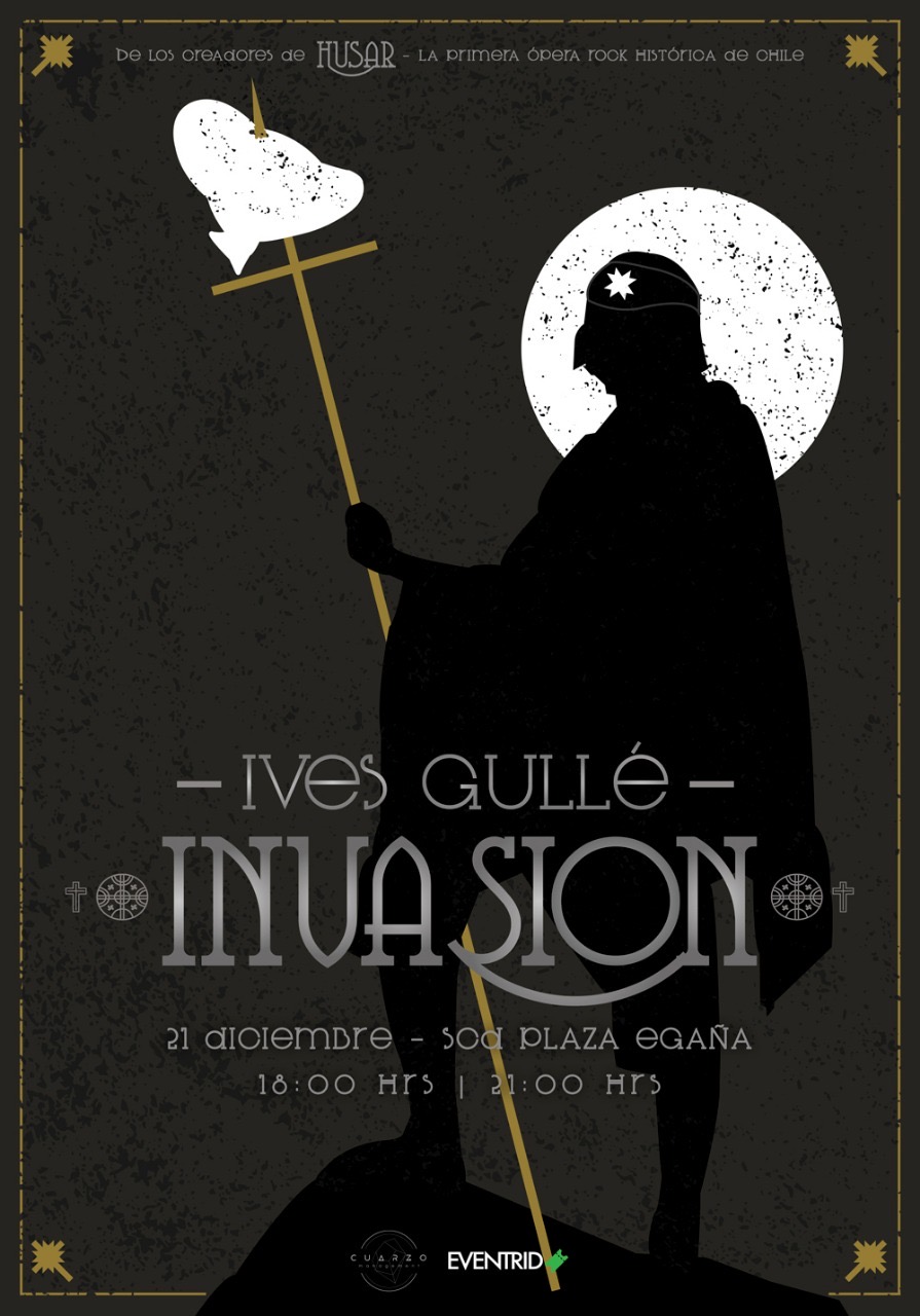El destacado músico, compositor y cantante nacional Ives Gullé, creador de la primera ópera rock histórica de Chile “Husar”, la cual cuenta las hazañas del héroe patrio Manuel Rodríguez, se encuentra pronto a lanzar por primera vez en vivo su proyecto “Invasión”.
