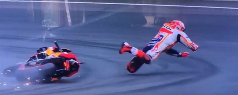 En el video se ve incluso como su airbag se expande a medida que va volando. Tras ser atendido, Márquez indicó que «estoy más enfadado por salir el undécimo que por la caída. El objetivo es terminar entre los cinco primeros y si se puede, en el podio, pero la victoria será difícil. Viñales y Quartararo tienen un ritmo estrepitoso», indicó.