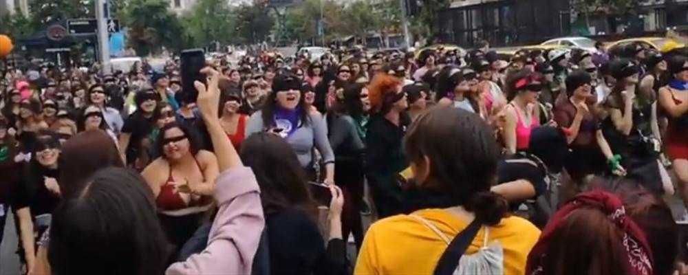 Se trata de la iniciativa de «LasTesis», quienes desde Valparaíso convocaron a ser parte de una performance para conmemorar en Santiago el día contra la violencia a la mujer en distintos puntos cantando y representando el sentir de diversos grupos feministas.
