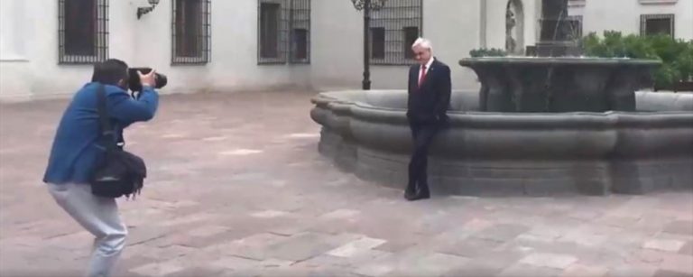 Noticias Presidente Sebastián Piñera se tomó fotos en La Moneda mientras se reunía masiva marcha en Santiago El gobernante cumplió una sesión de fotos luego de dar una entrevista al diario El Mercurio. Por Diego Puebla Hernández | 08 Nov, 2019. 19:49 hrs El gobernante cumplió una sesión de fotos luego de dar una entrevista al diario El Mercurio. Por ADN.cl El Presidente de la República de Chile, Sebastián Piñera, desarrolló una sesión de fotografía en el patio del Palacio de La Moneda, en el patio de los naranjos y ante la pileta ubicada en el centro de la casa de gobierno en Santiago. El periodista de ADN Noticias, Manuel Palominos, detalló que las imágenes del mandatario se debieron a una «entrevista que dio a El Mercurio. Luego de esto, evitó responder respecto a declaración de la ONU sobre Derechos Humanos». En momentos en que se congregaba una multitudinaria manifestación en la Plaza Baquedano, el gobernante pidió de buen ánimo a la prensa «muchachos, déjenme en paz» y luego agregó que la pileta era «lo único que no se filtra en La Moneda». Sebastián Piñera Sebastián Piñera: "Estamos preparando un proyecto de cambios a la Constitución" El enojo de Martín Cárcamo con su equipo por cortar al aire a un entrevistado en matinal Sigue a FUTURO.cl en Google Discover Recibe nuestros contenidos directamente en tu feed. Seguir en Google Contenido patrocinado