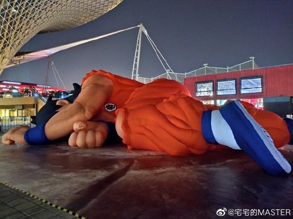 Así es, el mall chino decidió hacer una estatua gigante de Yamcha en la posición en la que quedó su cuerpo luego de ser derrotada.