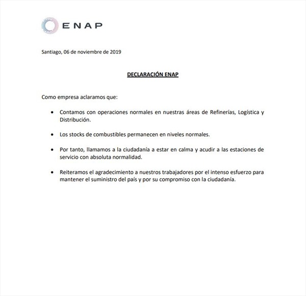 Esto, luego tras la viralización de un audio de WhatsApp de un dirigente sindical de Enap que decía que paralizarían la empresa, pero sin entregar una fecha concreta. Lo que asustó a las personas, quienes pensaron que el suministro de petróleo y bencina se acabaría en el país.