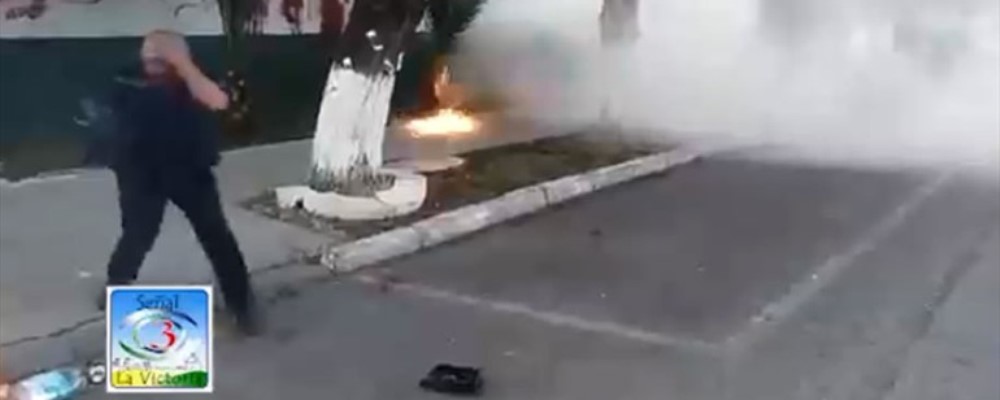 En el marco de los incidentes que se registraron en las afueras de la 51 Comisaría de Pedro Aguirre Cerda, un camarógrafo de Señal 3 La Victoria recibió el impacto de una bomba lacrimógena en pleno rostro.