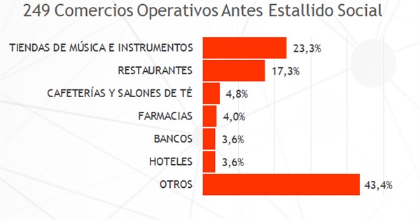 Según un estudio hecho por Georesearch, las manifestaciones y la crisis social han afectado fuertemente a cuatro zonas de Santiago: Providencia, Santiago Centro, Barrio Lastarria y Plaza Baquedano.