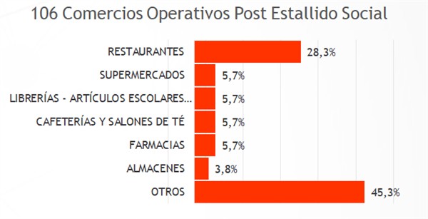 Mientras que en el Barrio Lastarria, que es donde se concentran más restaurantes y bares, solo disminuyó en un 2% la inoperatividad y una baja en sus ventas de 35% a 45%.