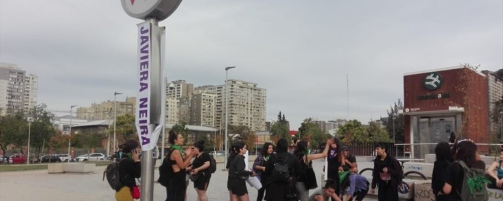 La actividad central se realizó en la estación Irarrázaval, rebautizada como Javiera Neira.