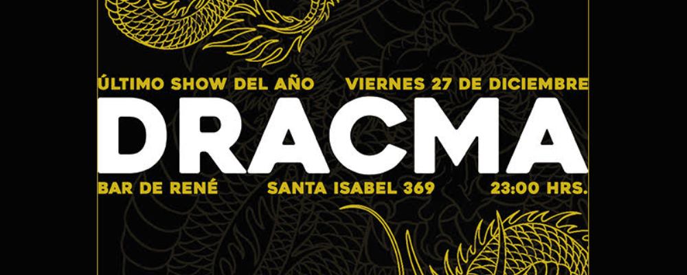 El viernes 27 de diciembre, está agendado un espectáculo imperdible para despedir el 2019. Dracma, recientemente reunido se presentarán en Bar de René con todos sus éxitos en su presente versión, luego del exitoso espectáculo «debut» que ocurrió hace unas semanas en Club Chocolate.
