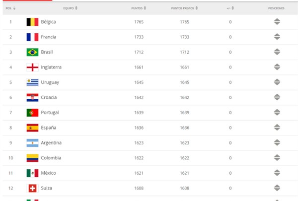 La Roja cierra el año en el puesto número 17 del ranking FIFA, que mantiene como líderes a Bélgica, Francia y Brasil.
