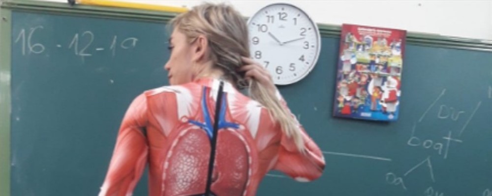 Disfrazada con un traje de la anatomía del cuerpo humano, sin piel, con la visibilidad de los órganos internos y musculatura llegó una profesora de Valladolid, España, al colegio donde hace clases, ganándose el aplauso de sus alumnos y de los usuarios de redes sociales.