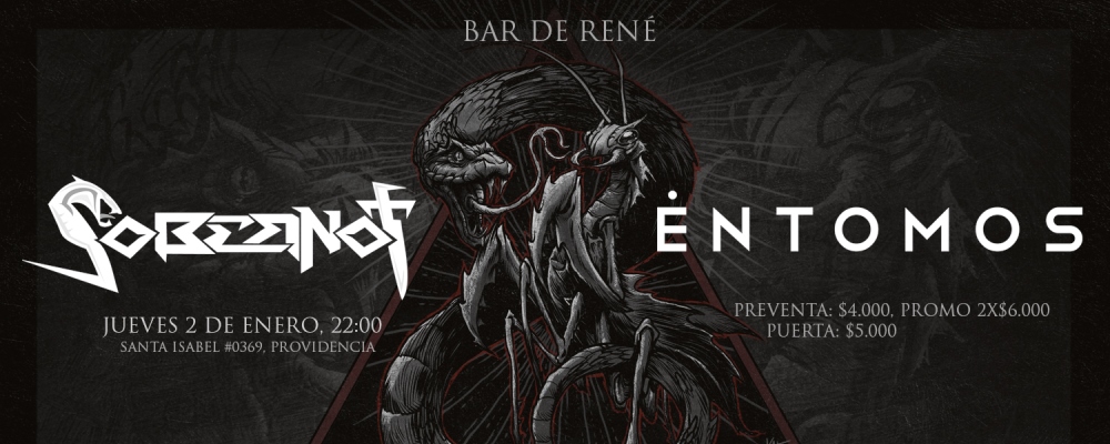 Sobernot y Éntomos se reúnen este 2 de enero en Bar de René para dar inicio al 2020 con una jornada de metal extremo que promete ser inolvidable.