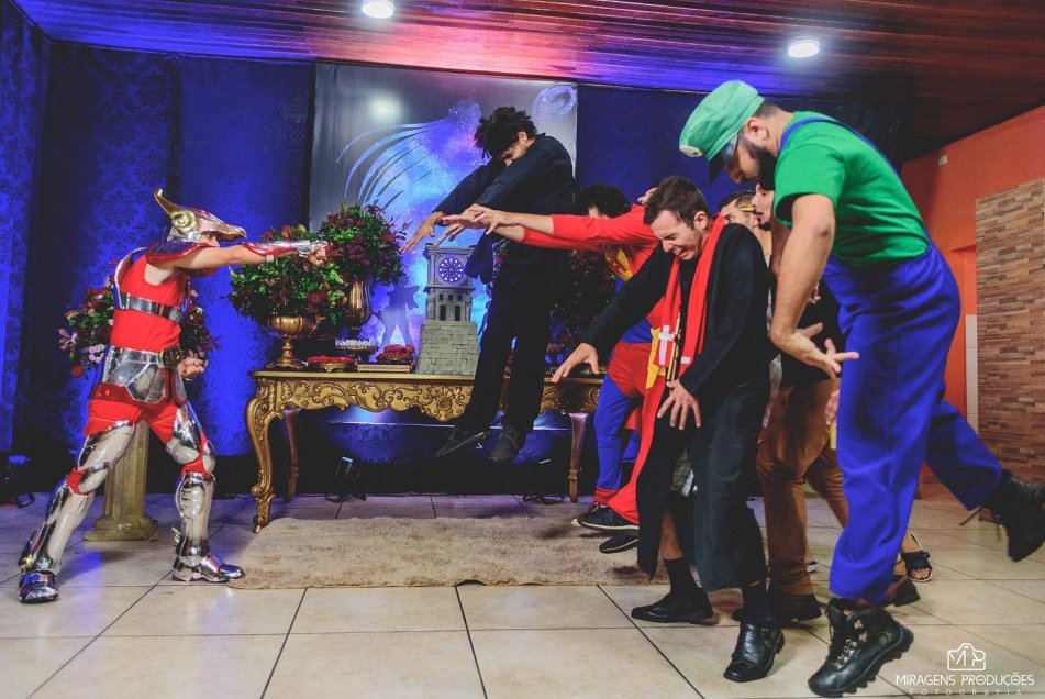 Las fotos de este matrimonio rápidamente comenzaron a circular en redes sociales, ya que incluso los invitados a la boca estaban disfrazados, y no necesariamente de «Los Caballeros del Zodiaco», sino que también de Luigi y el Chapulín Colorado, entre otros.