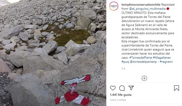 Según informó Emol, el rayado corresponde a una figura relativa a los selk’nam, y se encontró a 30 metros de la otra ilustración realizada por una turista italiana.